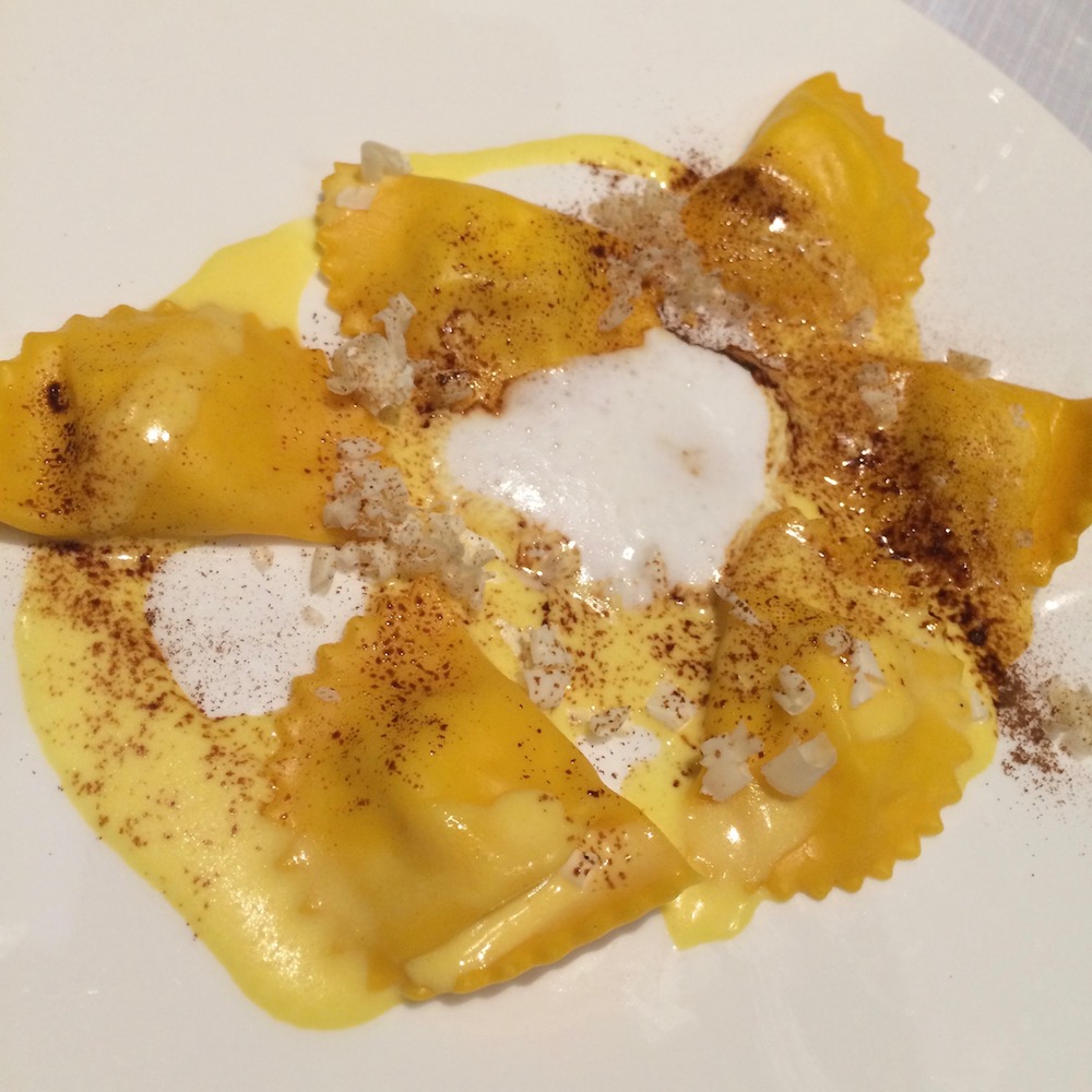 il top del menu è stato questo raviolo dai colori brillanti e dal magnifico connubio con la ricotta di Martinelli.