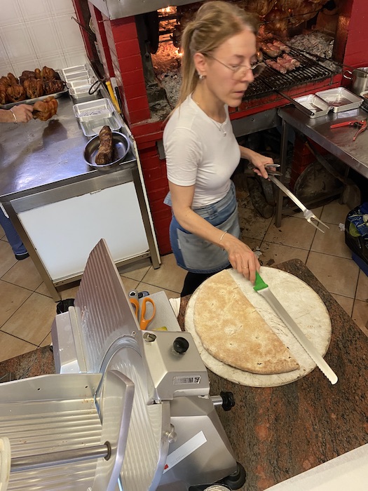 Rapito dalla scena, non ho potuto fare a meno di ordinare. Pollo ruspante e – udite udite – anatra arrosto. Un trionfo di sapori. Avrei voluto mangiare lì, sul posto (e sì, si può anche mangiare in sede), ma il tempo era tiranno. Così ho portato il bottino con me, e ho consumato il mio pasto… in piedi, in autostrada. Con le mani, senza vergogna. Una goduria irripetibile, con le dita da leccare fino all’ultimo morso.