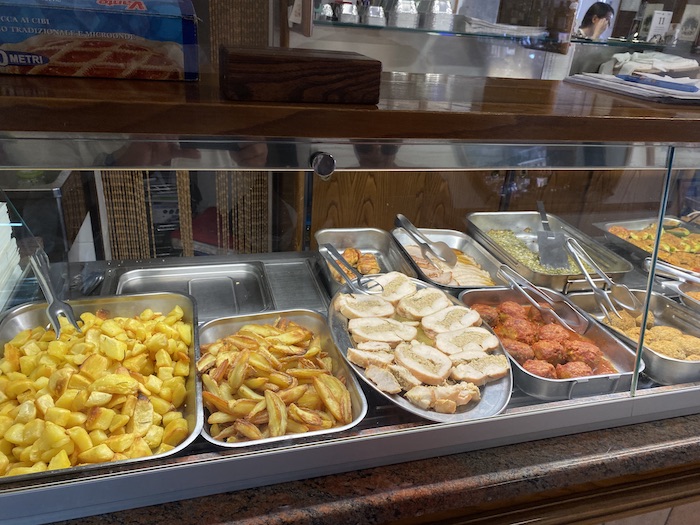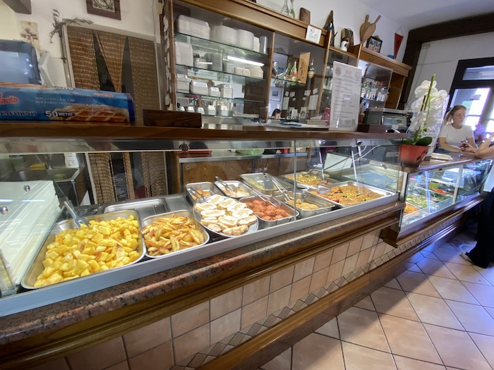 È così che ho scoperto Serenella e Alfredo, una tavola calda che sa di casa. Appena varcata la soglia, il primo impatto è con un bancone essenziale per caffè e digestivi, ma basta uno sguardo più in là e si apre un mondo: un banco pieno di leccornie, con la padrona sempre all’opera, tra un’aggiustatina e un sorriso. Le foto, credetemi, parlano da sole.