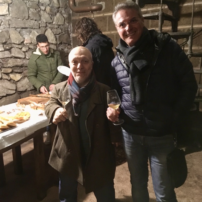 Antonio per natura è un caciarone buono, loquace e dall’aspetto rassicurante, ti riceve con grandi sorrisi e, con un braccio ti avvolge e con l’altro sostiene già la prima bottiglia di rifermentato bianco come aperitivo, e ti introduce agli altri convenuti con approccio da profeta del vino artigianale.