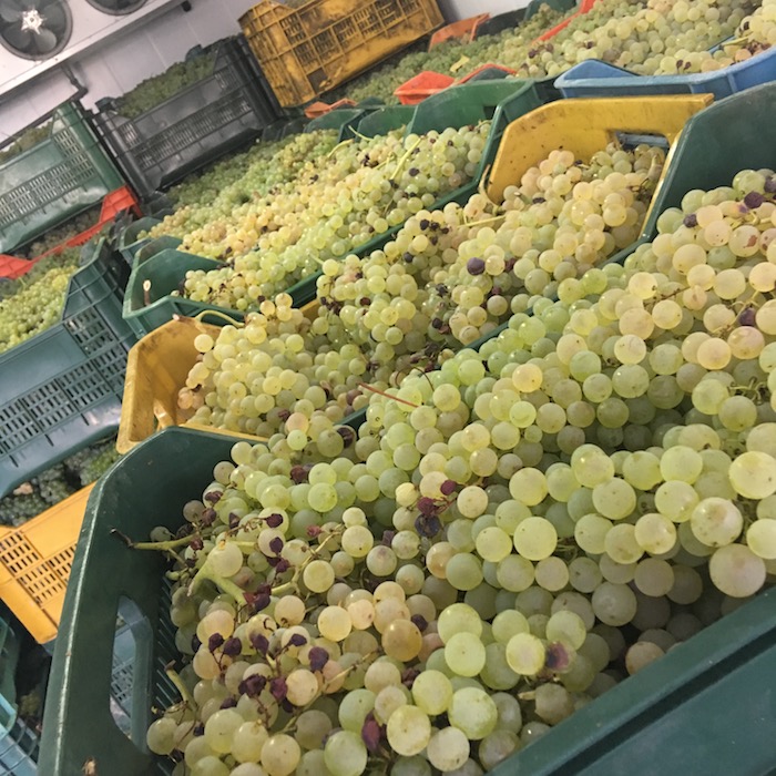Il tendone di Montepulciano è splendido, grappoli perfetti e chicchi integri. Mi colpisce l’uniformità del verde diffuso e la sanità delle uve: sarà una grande annata per il suo piacevolissimo Marcantanoio 2018,