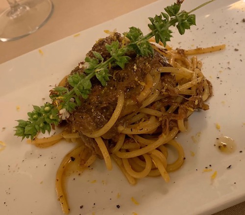 Un vino divertente e brioso che si fa bere su salumi formaggi e anche primi come questa pasta con ragu genovese di Riccardo, devo dire che ho scolato la bottiglia: ho dormito beatamente.