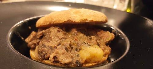 BOMBA FRITTA CON STRACOTTO DI PECORA