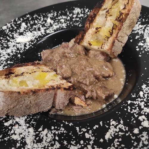 Non mancano altri secondi come la carne cotta esclusivamente sui carboni e la pecora in casseruola, o le classiche tartare di Scottona e gli Hamburger di manzo con stracciata o con bufala e fiori di zucca .