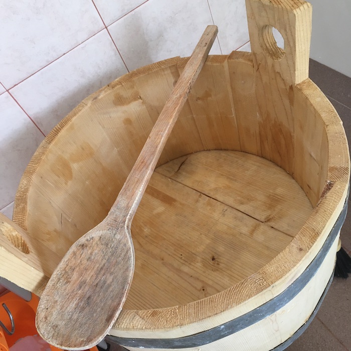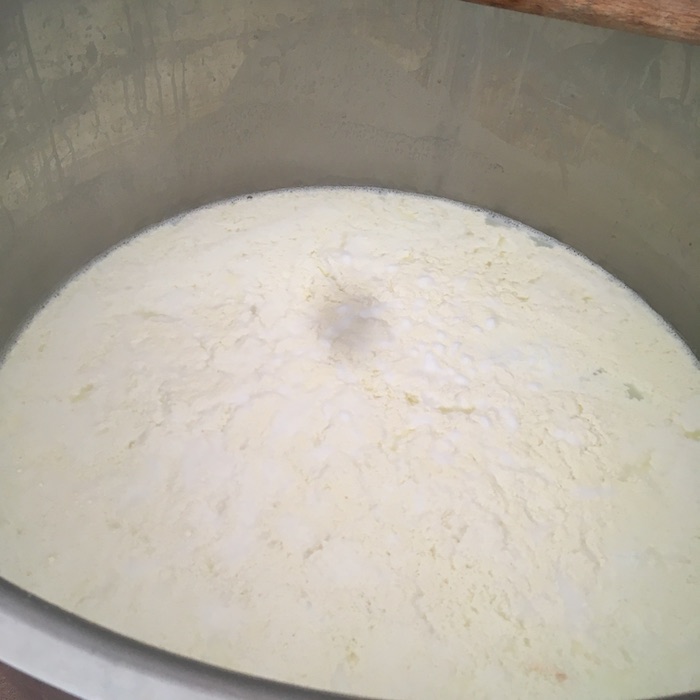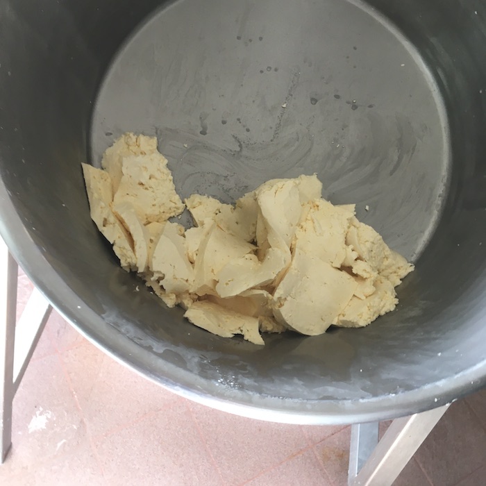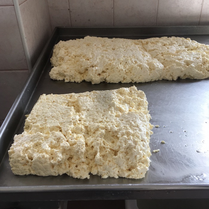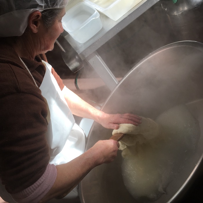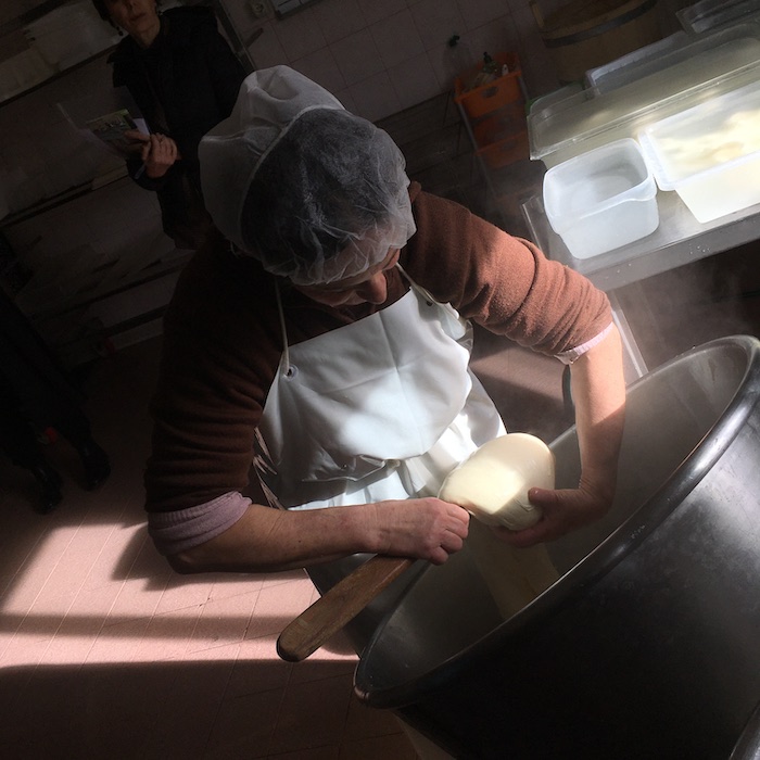 Arriviamo con il gruppo di giornalisti organizzato dal Gal Maiella Verde e Slow Food Lanciano, e troviamo la signora Annarita che già filava la cagliata acidificata con il siero innesto, un metodo tradizionale che ormai non si utilizza quasi più. In Puglia è utilizzato per la produzione delle Mozzarelle Dop a Gioia del Colle.