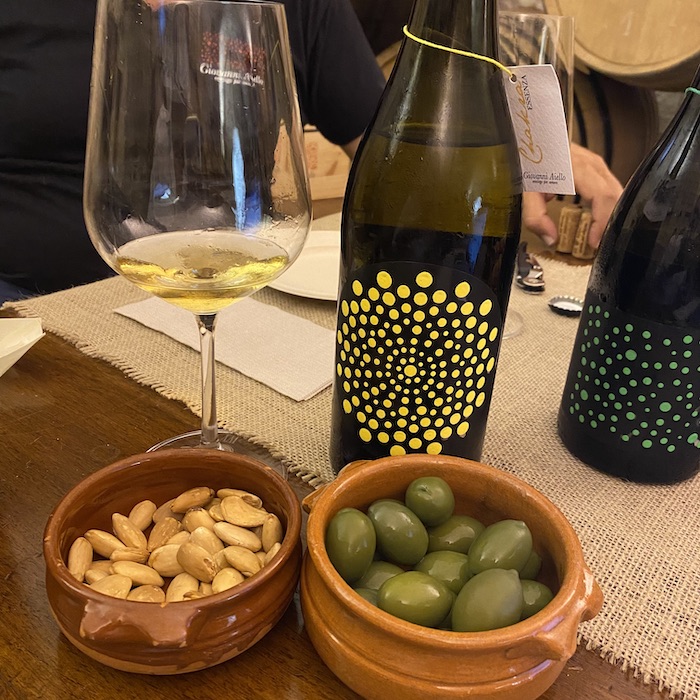 Tutto questo avviene da Giovanni: un personale molto cordiale ci dà il benvenuto (in lingua) e poi lui conduce il tour raccontando il vitigno e il territorio concludendo con degustazione finale.