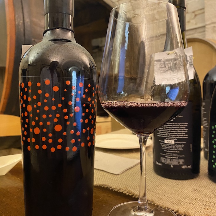 Pepe nero, mora macerata, sfumature affumicate, frutto rosso balsamico, con sfumature di gelso rosso. Note di rosa e di salsedine e bocca freschissima, tanto frutto nel finale con buon equilibrio con tannini ben integrati. Nel finale permane la nota salmastra con frutto come l’amarena acerba e i tannini che accarezzano senza far mai pesare i 14,5 gradi di alcol. Fermentazione in tini di legno con Affinamento in legno barrique e tonneau per almeno 14 mesi. Vino di grande equilibrio in grado di reggere buona parte della cucina da primi piatti con sughi strutturati a secondi di buona complessità. Ottimo.