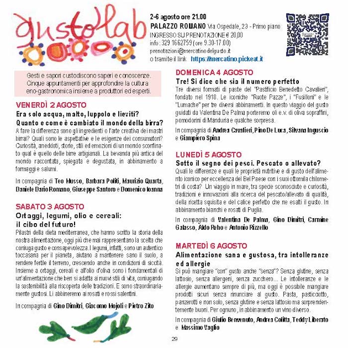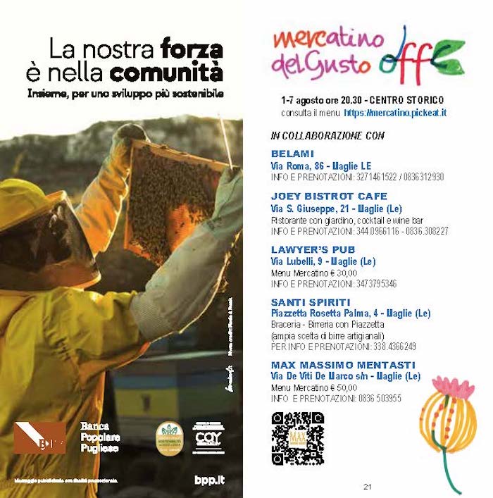 Programma definitivo Mercatino del Gusto a Maglie 1 – 7 agosto 2024 25 Luglio 2024Andrea De PalmaNessun commento