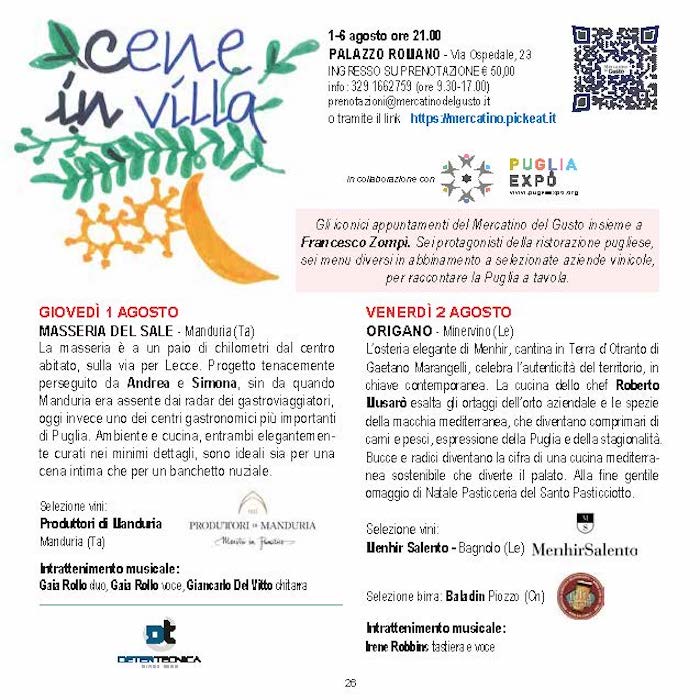 Grottaglie (TA) 6 e 7 agosto 2024 decima edizione di “Orecchiette nelle ‘nchiosce – on the road” 9 Luglio 2024Andrea De Palma
