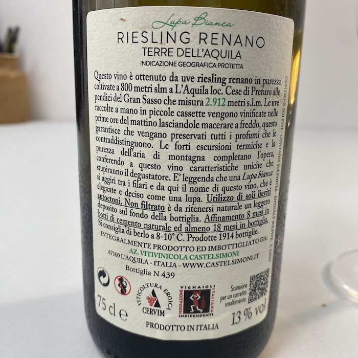 Il Riesling, si sa, è come l’aglio o il tartufo bianco (per chi può permetterselo): o lo ami o lo eviti. E io, pur non essendo un esperto né dell’uno né dell’altro vitigno, qui l’ ho bevuto con grande piacere.