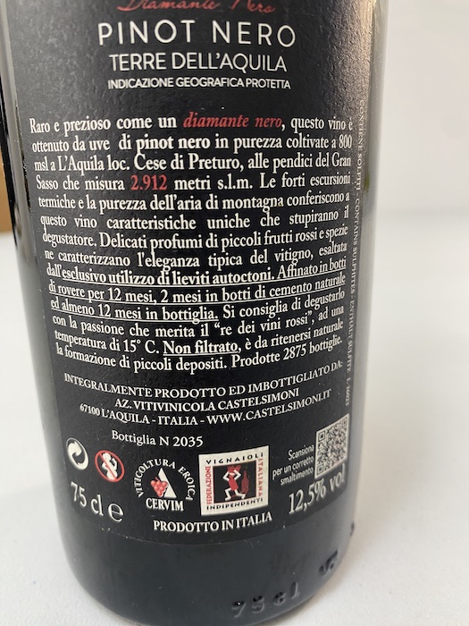 Non storcete il naso: avete capito benissimo. Un Pinot Nero e un Riesling Renano che nascono sulle montagne dell’Aquila, a ottocento metri sul livello del mare. Confesso: non lo conoscevo nemmeno io. Ma l’ho bevuto e — detto in modo poco accademico — a me mi piace assai.