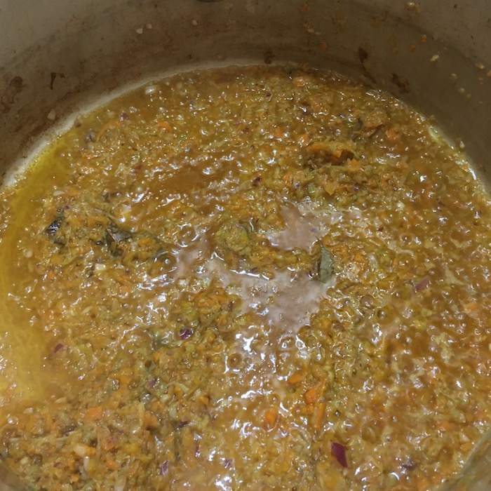 - Rimestare in continuazione e far ridurre fino a quando il composto è diventato di colore marroncino.