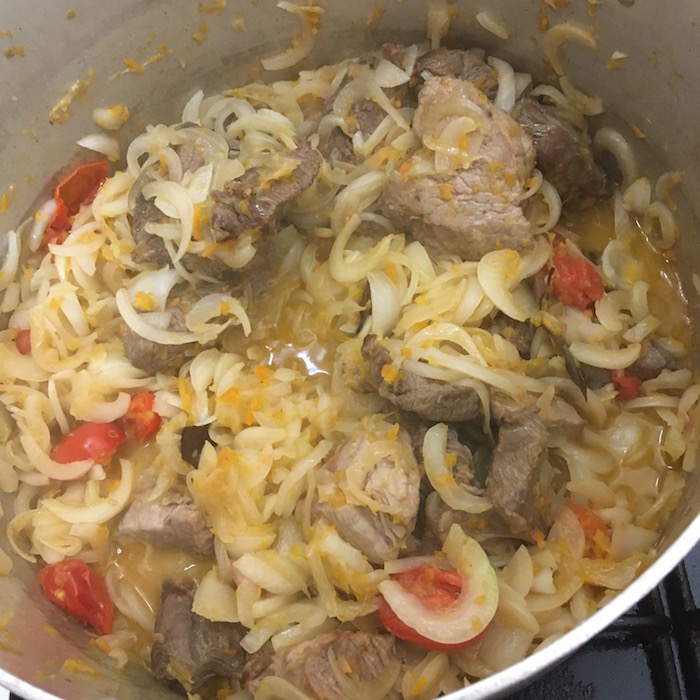 Si tratta, in sintesi, di uno stracotto di tante cipolle (io ho utilizzato la dolcissima cipolla di Margherita di Savoia: chi non ama la cipolla si tenga a distanza) e carne di vitello.