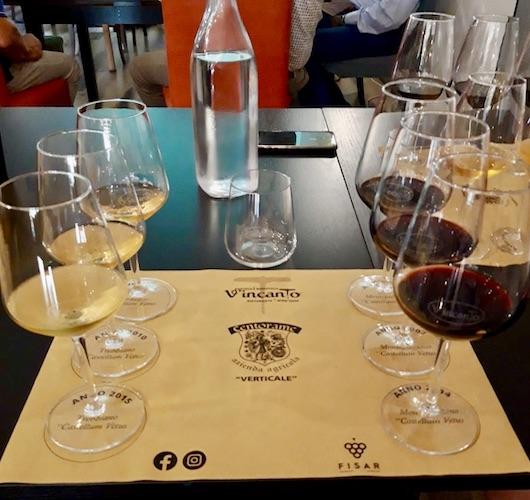 A Carsoli presso il ristorante V’Incanto si è svolta una verticale dei due Castellum Vetus: Trebbiano 2015 – 2010 – 2006, Montepulciano Colline Teramane 2014 – 2007 – 2006.